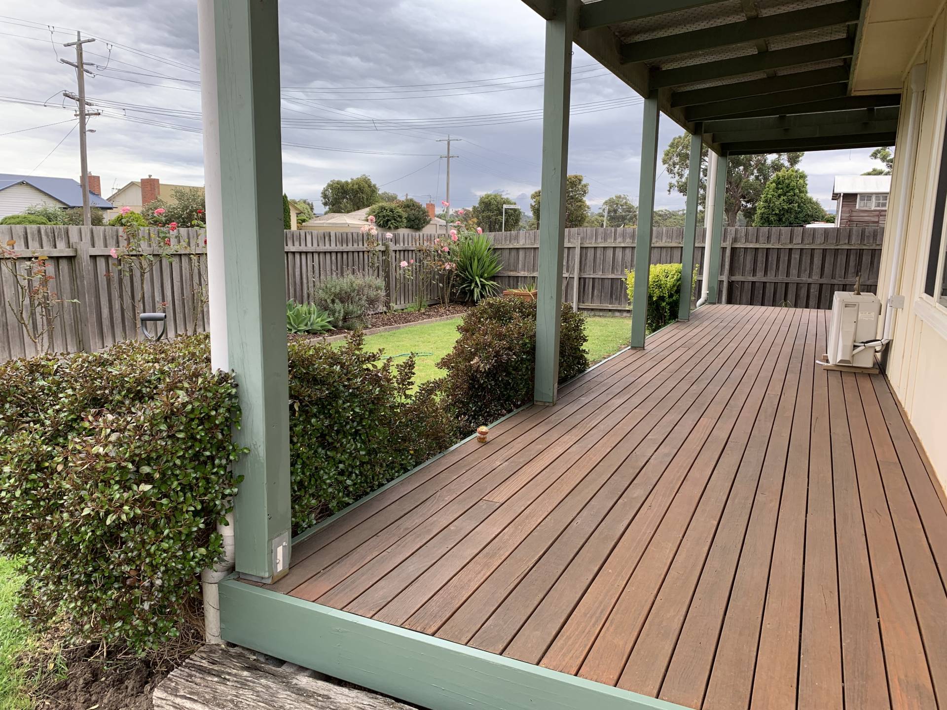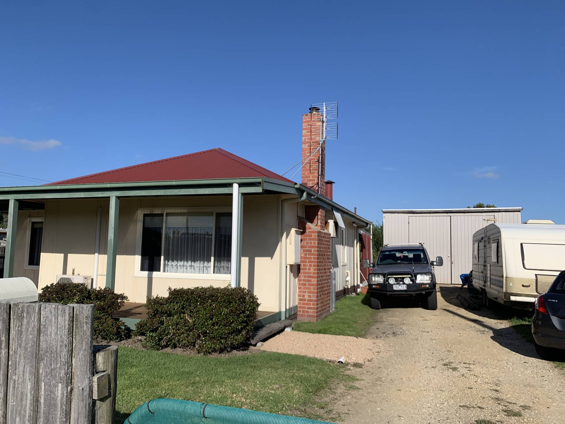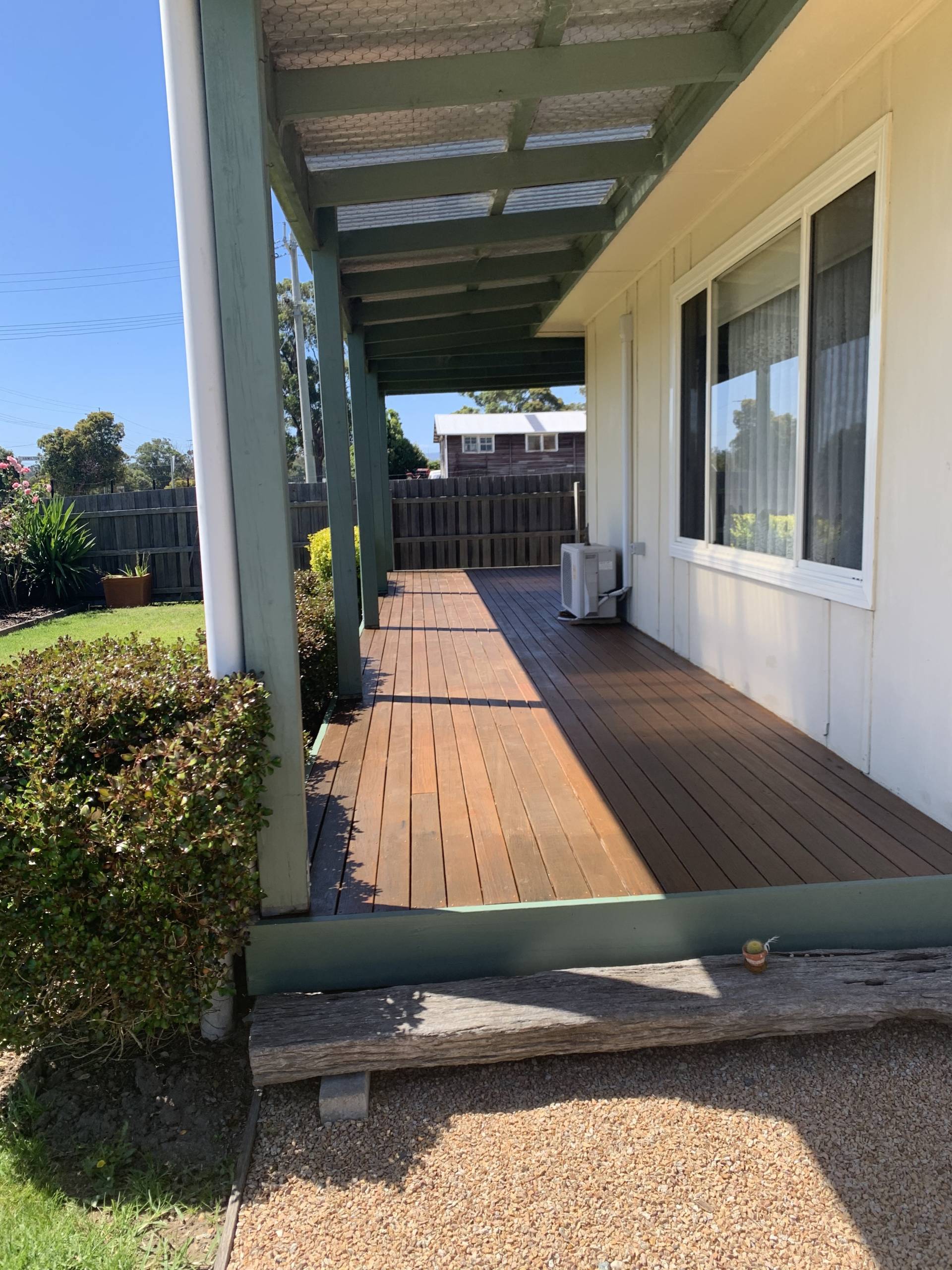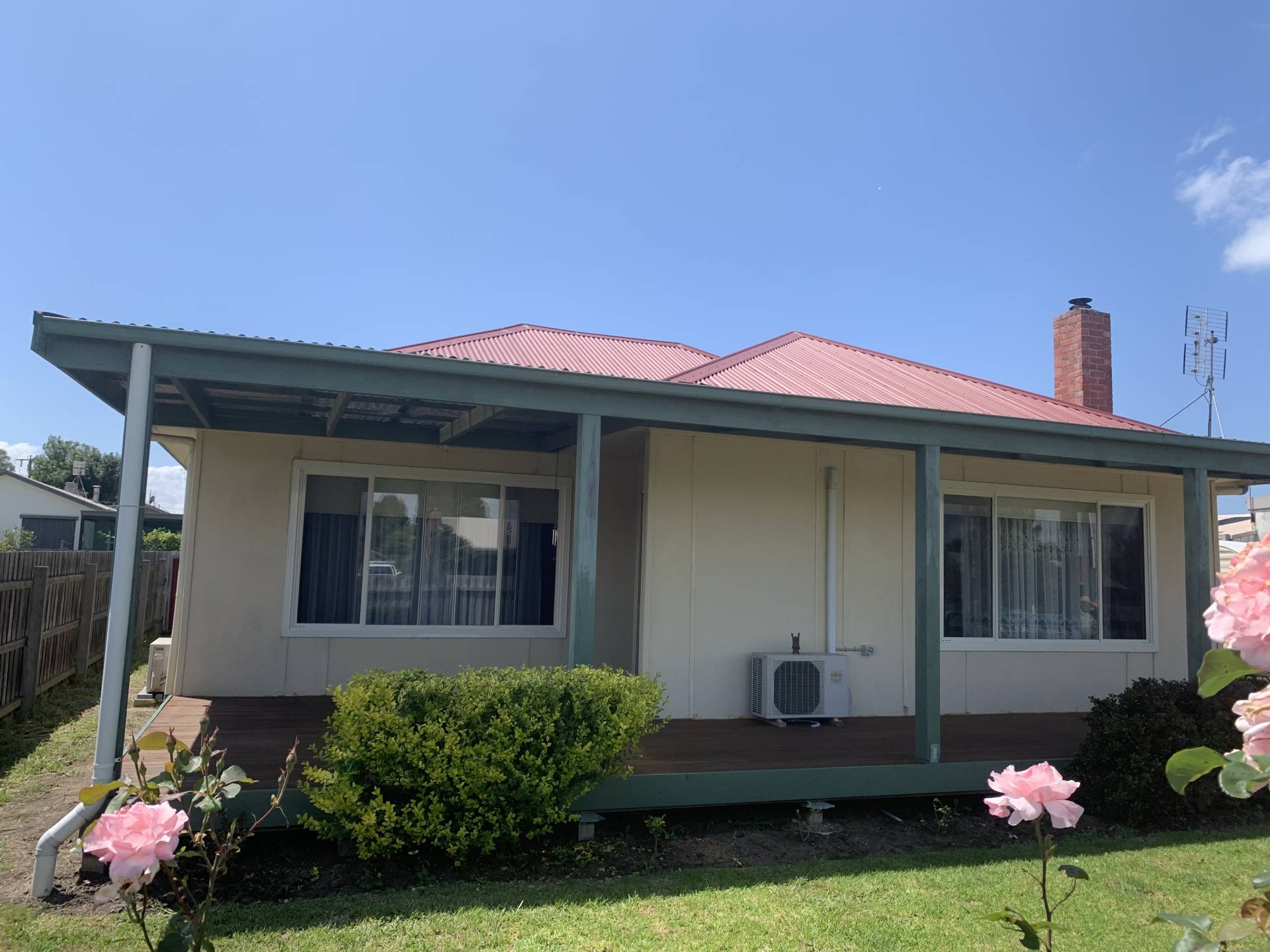 3 bedroom home on 904 m2 with new front deck (NW facing) and back covered patio (E facing). The home has 3 large bedrooms two are 3.6 x 4.5 and one is 3.6 x 3.6), a large kitchen, good sized lounge room leading onto timber deck, renovated bathroom and renovated laundry. There are three near new split systems, wood heater, 2 toilets and gas cooker. The property has an excellent solar HWS (Apricus Australia) saving on bills. It also has a very large and very high shed that would house 6 cars (which has been rewired and has relatively new roof) and timber dog proof fencing. Improvements include insulation in roof and walls, near new carpet, rewired house and shed, new roof over the front of the house, new aluminum windows and near new HWS. To top it off the East facing patio looks onto a lovely backyard and the neighbours are great.