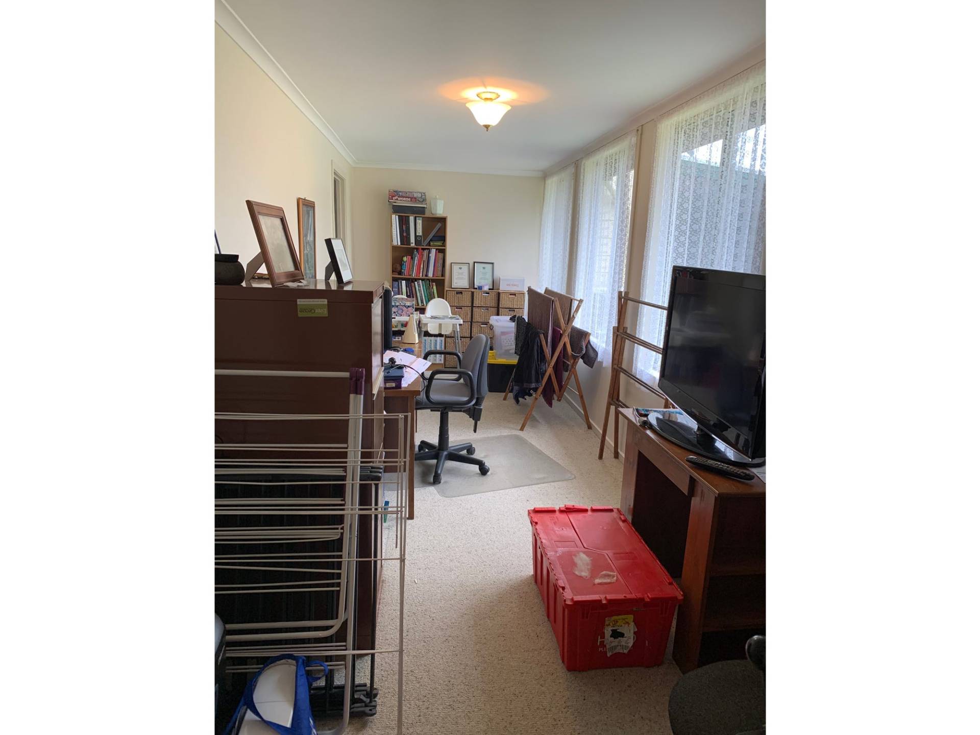 A huge master bedroom, ensuite and wir and three further bedrooms along with main bathroom, large laundry, a sunroom/ study, an internal alarm system and ourdoor video surveillance.