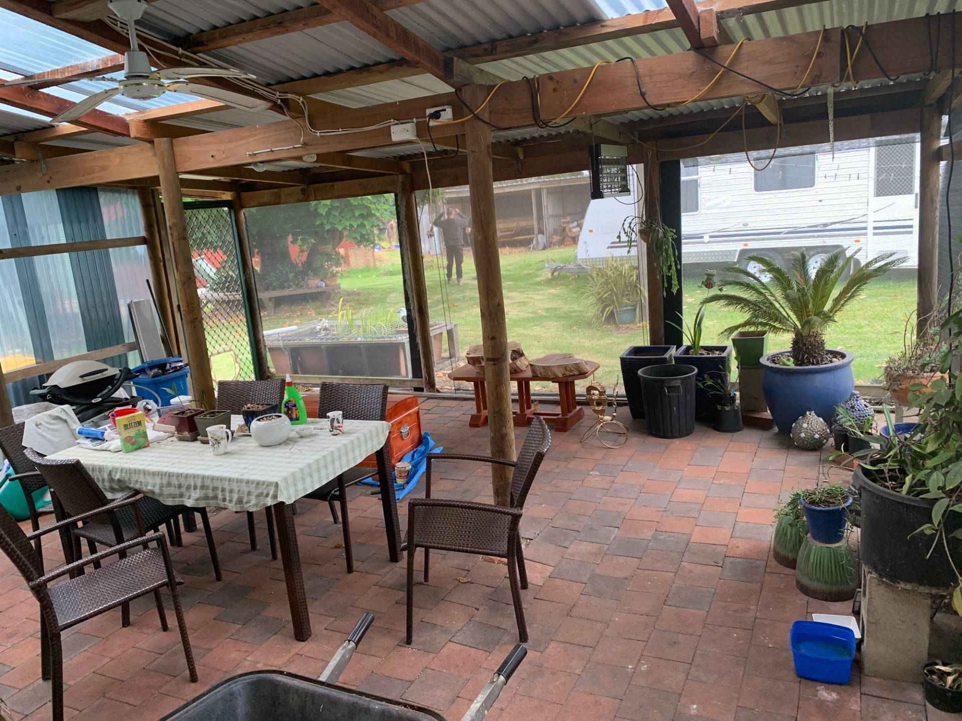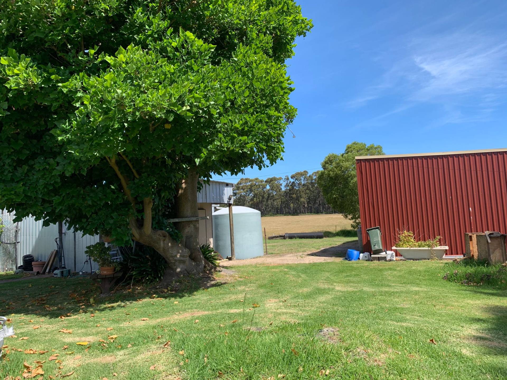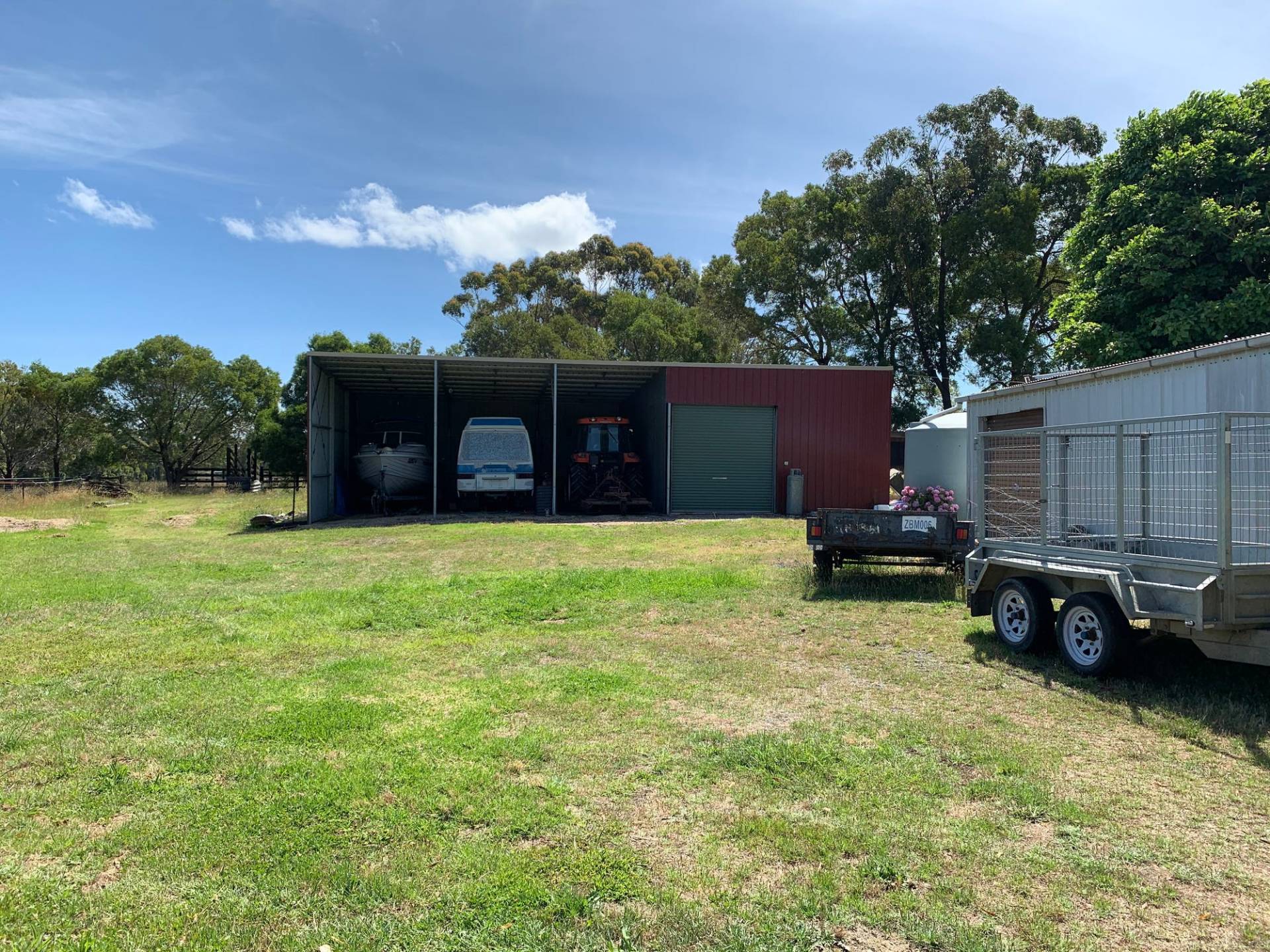 4 bay tractor port/ machinery shed, double carport, workshop and double wood shed, coolroom, stockards. The property can carry approximately 25 head of cattle.
