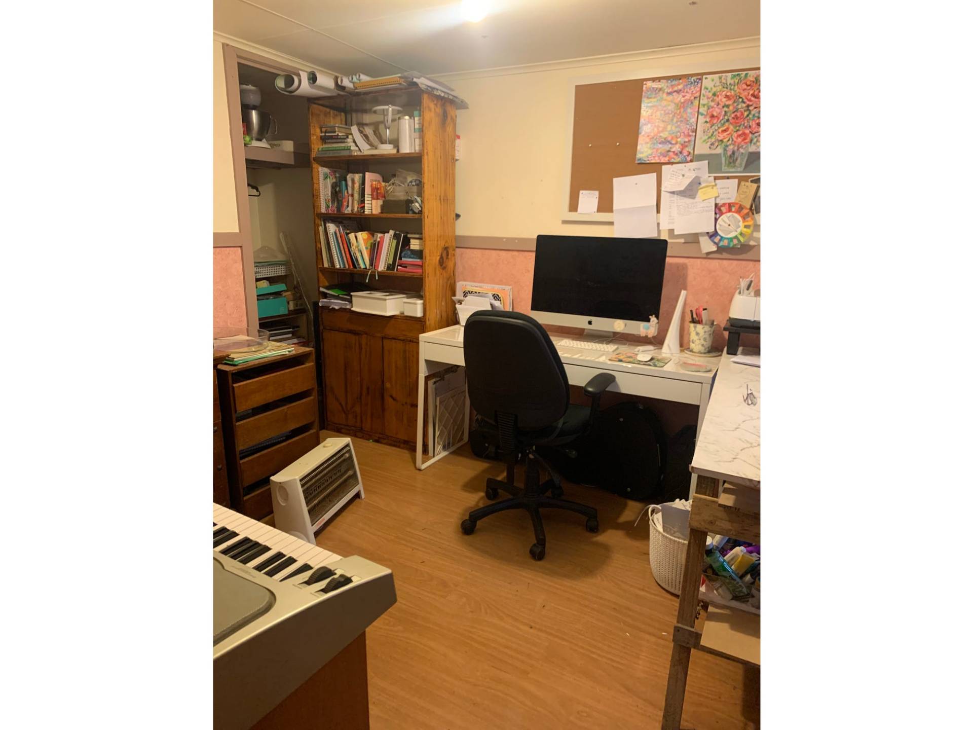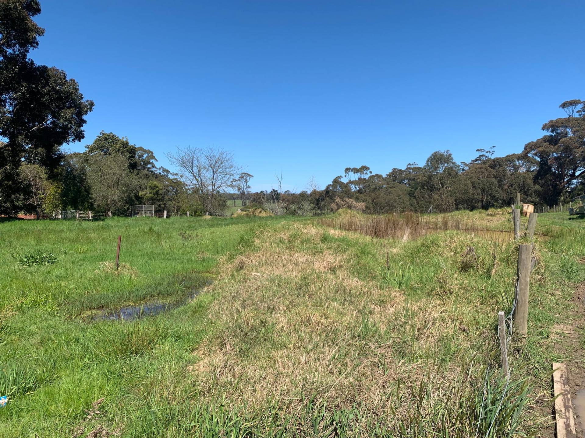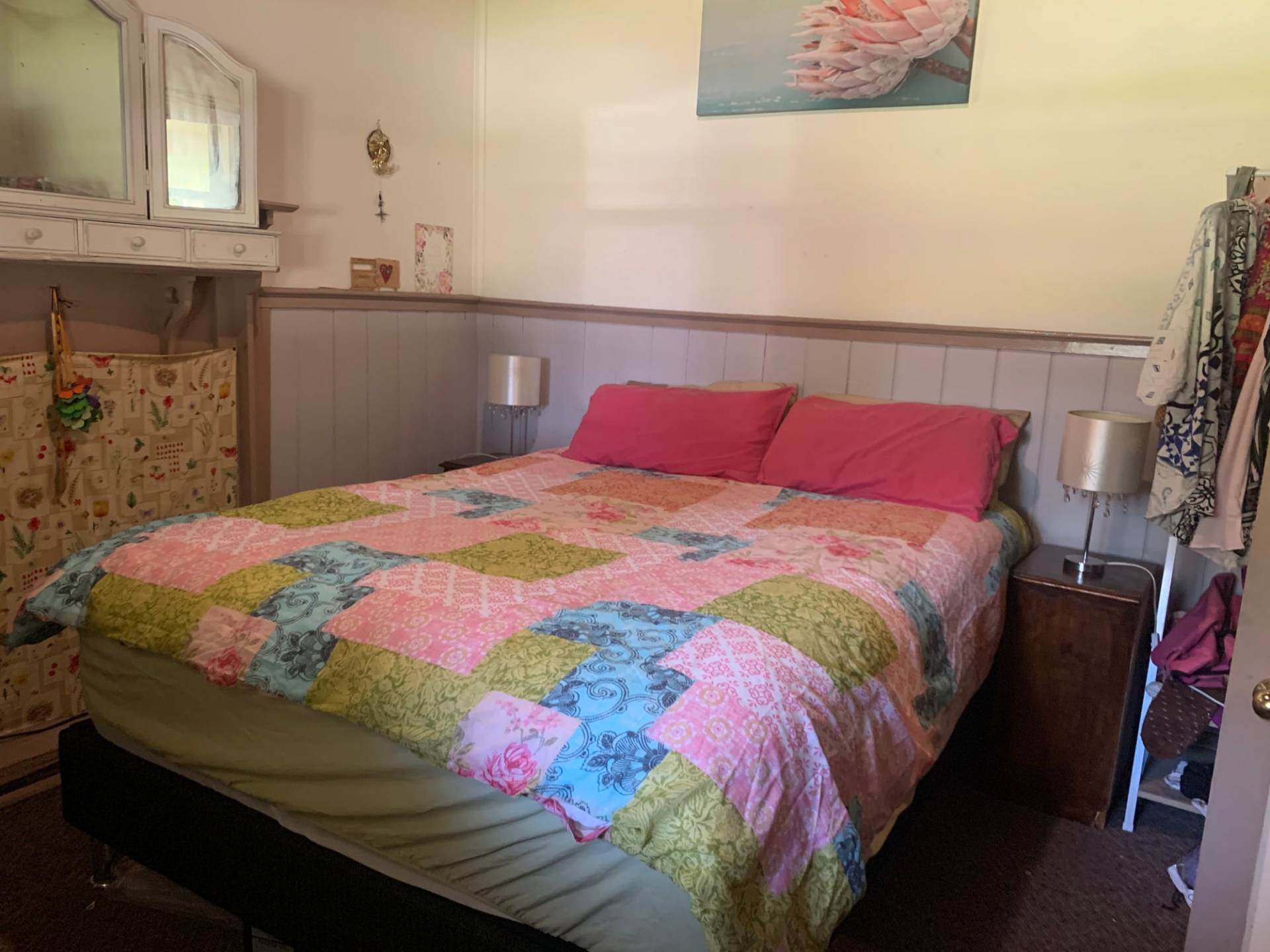 Historic Cottage facing NE that needs TLC on 8300m2. The home is 3 bedrooms and an office with an outdoor paved entertaining area. The front 4 rooms (3 bedrooms and loungeroom) need re stumping. Heavy rain causes a leak in the dining/ kitchen area. Two thirds of the interior walls are timber. The owners have been advised that the framing of the 15 X 9m shed with power (which includes an Art & Craft room) can be used to build a house or a new house can be built elsewhere. The block is a rectangle shape so that 2/3 of the block does not have neighbours. The acreage has a dam and a lovely treed backdrop.