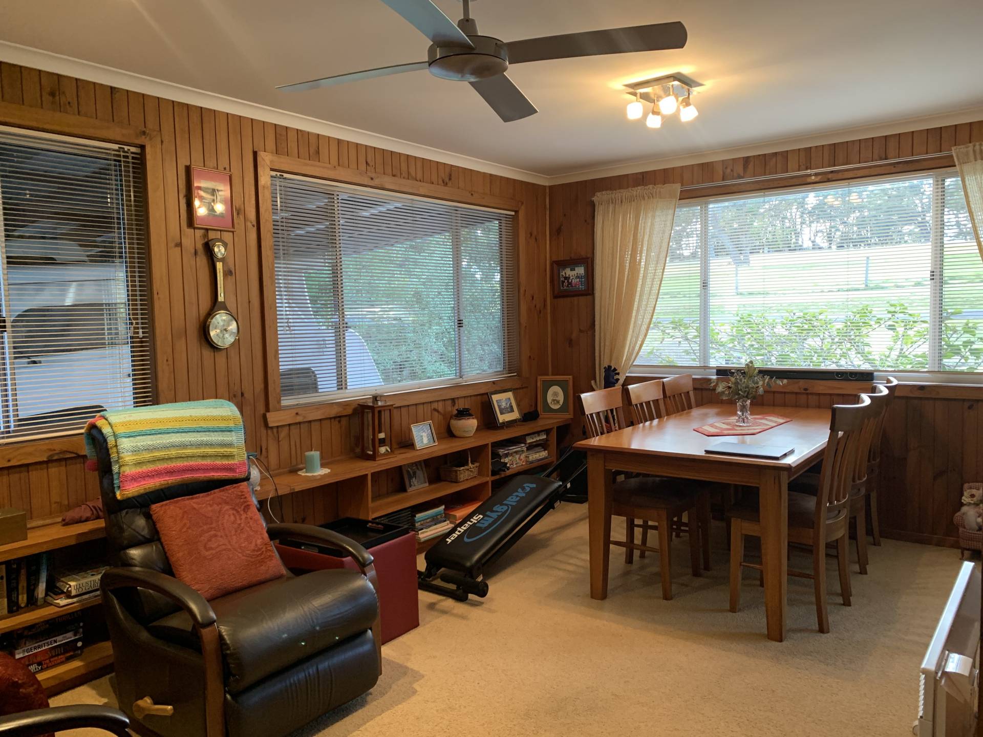 The 4 bedroom home (includes roomy bungalow) of approximately 120m2 has a sunroom, lounge room, dining room, living room with BOSE surround system. There is wood heating (and wood box), R/C heating and cooling and a 2nd toilet. The property has two carports, garage, new HWS, established garden and fernery and is on concrete stumps. It also has new guttering and is fully rewired.