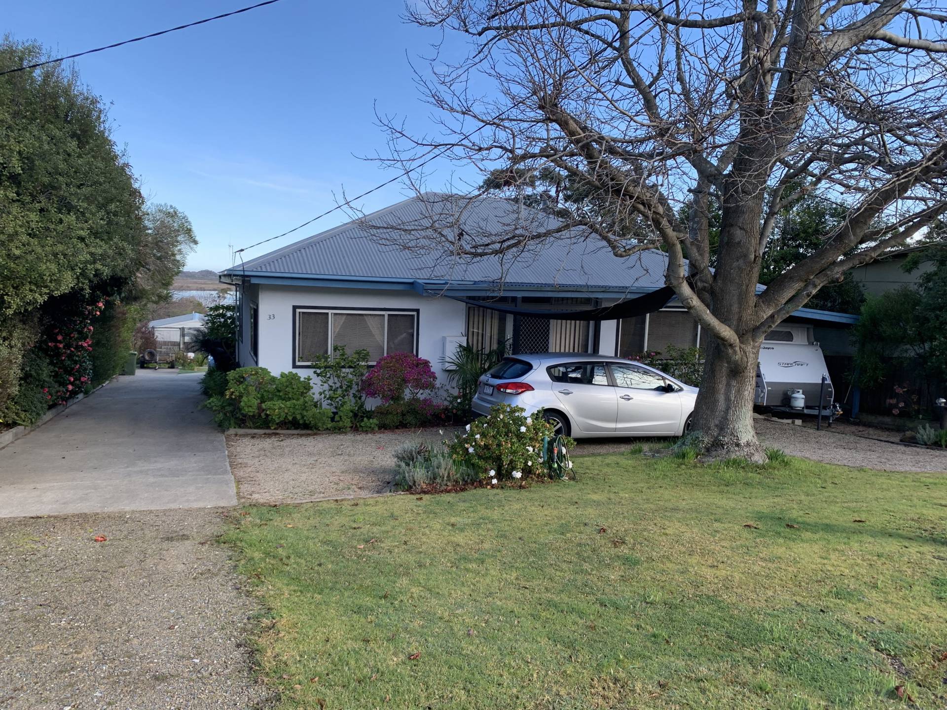 Private but not far from the post office, general store, pub and jetty this well maintained home also enjoys a rural backdrop but also views from the kitchen and the deck to the river and the sea!